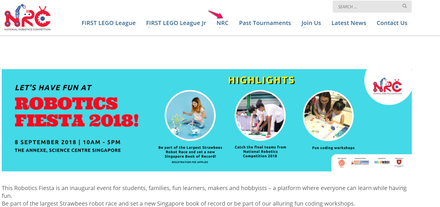The core objective was to create a website cloned on the proven functional structure of the FLL Singapore website, while customizing features to match unique NRC competition needs.